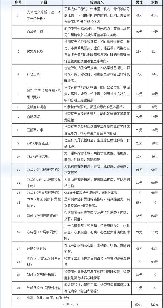 參加此體檢活動的客戶均可享有“美年大健康體檢中心”價值620元/位的新生命專屬體檢套餐,該體檢套餐設置有21個項目,全面了解您或您家人的健康狀況。體檢套餐的費用由新生命干細胞公司承擔310元/位,體檢者承擔310元/位。凡參加體檢者體檢當日可獲得精美禮品一份,現金抽獎機會一次。