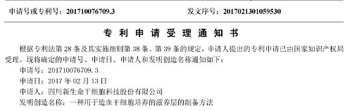 近期,四川新生命干細(xì)胞科技股份有限公司研發(fā)團(tuán)隊(duì)發(fā)明了一種全新的用于擴(kuò)增臍帶血造血干細(xì)胞的滋養(yǎng)層制備方法,利用這種滋養(yǎng)層擴(kuò)增的臍帶血造血干細(xì)胞數(shù)量明顯高于傳統(tǒng)方法。據(jù)悉,該發(fā)明已向國(guó)家知識(shí)產(chǎn)權(quán)局提出專利申請(qǐng)并已獲得受理。