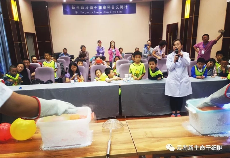 干細胞潔凈實驗室參觀結束后,我庫的實驗室技術人員為到場的各位小朋友們準備了三個別開生面的液氮實驗。(本次實驗均采用凍存干細胞時使用的液氮,實驗過程需在專業人員指導下操作,請勿模仿)