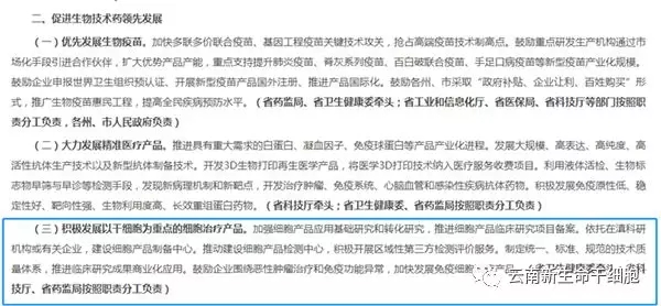 意見中明確:積極發展以干細胞為重點的細胞治療產品。加強細胞產品應用基礎研究和轉化研究,推進細胞產品臨床研究項目備案。依托在滇科研機構或有關企業,建設細胞產品制備中心。推動建設細胞產品檢測中心,積極開展區域性第三方檢測評價服務。制定統一、標準、規范的技術質量體系,推進臨床研究成果商業化應用。鼓勵企業圍繞惡性腫瘤治療和免疫功能異常,加快發展免疫細胞治療產品。由云南省衛生健康委牽頭;云南省科技廳、云南省藥監局按照職責分工負責。