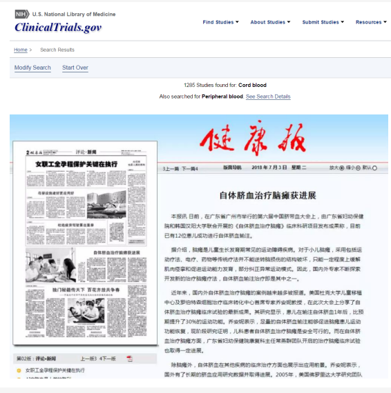 圍產期臍帶血干細胞的應用研究也呈現突飛猛進之勢。據美國臨床試驗數據庫(ClinicalTrials.gov)的統計,截至目前,全球正在開展的圍產期臍帶血臨床研究已超過1200項,涉及腦癱、自閉癥、缺血性腦卒中、腦損傷、糖尿病等很多病種。顯而易見,當圍產期臍帶血廣闊的應用前景變成現實時,擁有“種子細胞”的人群將率先享受到干細胞技術釋放的應用紅利。