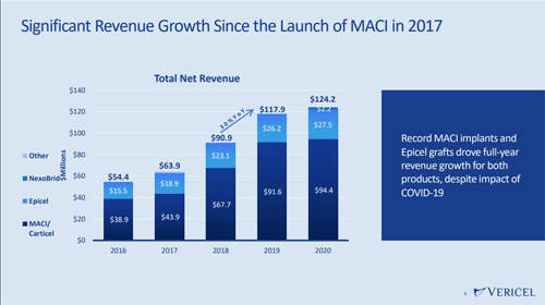 其中不乏市場反響很好的產品,如韓國Medipost公司的Cartistem、美國Vericel公司的MACI。前者已連續4年銷售額超過100億韓元(約6000萬元),MACI的銷售額在2020年受到新冠影響下仍然達到了9440萬美元(約6億元)。