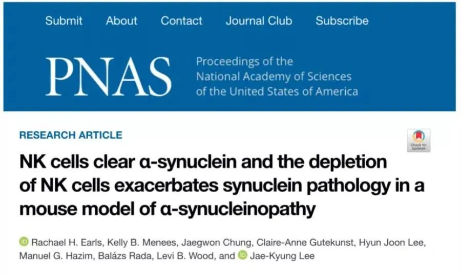 “我們通過實(shí)驗(yàn)發(fā)現(xiàn),NK(自然殺傷)細(xì)胞可以有效地清除異常的α-SYN,并減少促炎細(xì)胞因子IFN-γ的釋放,如果沒有NK細(xì)胞,神經(jīng)系統(tǒng)很容易受到攻擊”,論文作者Jae-Kyung Lee說。