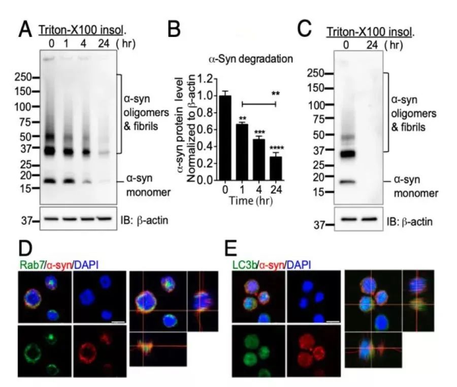 (圖B)α-SYN原纖維降解的定量分析;