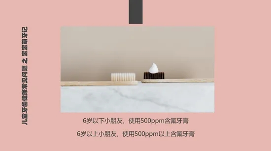 如果小朋友開始已經會吐水,不會吞咽牙膏了,這個年齡段一般是3歲以上6歲以下,基本就可以使用普通的低氟牙膏。普通的低氟牙膏,含氟量大概會在500ppm左右。6歲以上的小朋友選擇含氟量在500ppm以上的牙膏,市面上大概有含氟量在950ppm、970ppm、還有1000ppm左右。有的小朋友屬于齲齒高風險,會推薦他使用1200ppm含氟量的牙膏,還有其他途徑可以增加氟化物的攝入量。