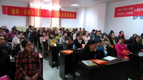 2014年11月29日星期六,在昆明市云南省第二人民醫院召開孕校。產科馬輝老師在9樓健康教室為大家講解“分娩方式的選擇”。詳細介紹了有哪幾種分娩方式,以及不同的情況要采取不同方式進行分娩,以及在懷孕期間應當注意的事項。 云南新生命干細胞銷售總監彭娟在毛輝老師講解結束后,為準媽媽講解干細胞的相關知識,以及在云南省移植干細胞的相關注意事項。