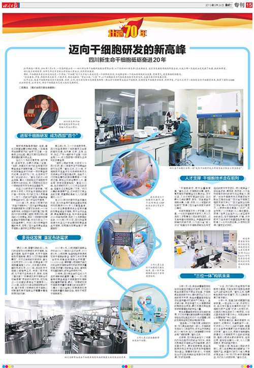 公司大事件 2019--09-27 邁向干細胞研發的新高峰,四川新生命干細胞砥礪奮進20年 20年彈指一揮間。1999年7月8日,一家高科技公司---四川新生命干細胞科技股份有限公司(以下簡稱四川新生命)在成都誕生。這家涉足健康領域的科技企業,從成立那一天起就注定充滿了機 2019--08-09 四川省干細胞庫獲AABB認證 多種干細胞有了“國際簽證” 近日,四川新生命干細胞科技股份有限公司及其下屬的四川省干細胞庫獲得了“全球先進輸血和細胞治療聯盟”(AABB)認證證書,認證范圍為臍帶、胎盤和脂肪來源間充質干細胞的制備、儲 2019--05-31 四川臍血庫榮獲2018年騰訊城市力量四川政務服務獎 近期,由成都市網信辦指導,騰訊公司、騰訊大成網主辦的騰訊“城市力量”四川頒獎典禮在成都市錦江賓館舉行,來自四川相關政府部門、媒體組織、互聯網科技領域、公益團體的代表齊 2019--05-31 四川臍血庫:滿足血液病患者移植的同時加強臨床基礎研究投入 2月12日,四川省臍帶血造血干細胞庫發布了“2018年臍帶血應用情況報告”,該報告從臍帶血臨床移植情況和基礎研究投入等兩方面對該庫2018年臍帶血出庫應用情況進行了回顧與總結。全年 第一頁 上一頁 1 下一頁 最后一頁